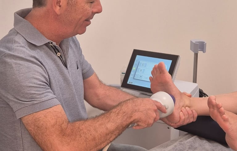 שימוש במכשיר Omnispec המתקדם מבית Medispec. מכשיר השולח גלי הלם בעוצמה חזקה לרקמה, מפרק הסתיידויות למקרי דורבן, כתף קפואה ודלקות כרוניות.